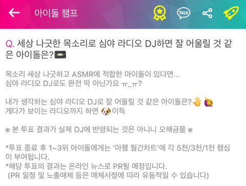 세상 나긋한 목소리로 심야 라디오 DJ하면 잘 어울릴 것 같은 아이돌은?