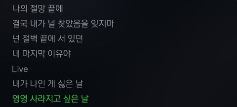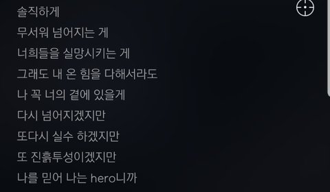 나는 이 정도였는데 이삐들도 찡했거나 가슴에 박혔던 가사가 있음 알려주라ㅎㅎ 평소엔 몰랐는데 딱 누군가 말해줘서 곱씹어보면 와닿는 가사들이 있으니까!!