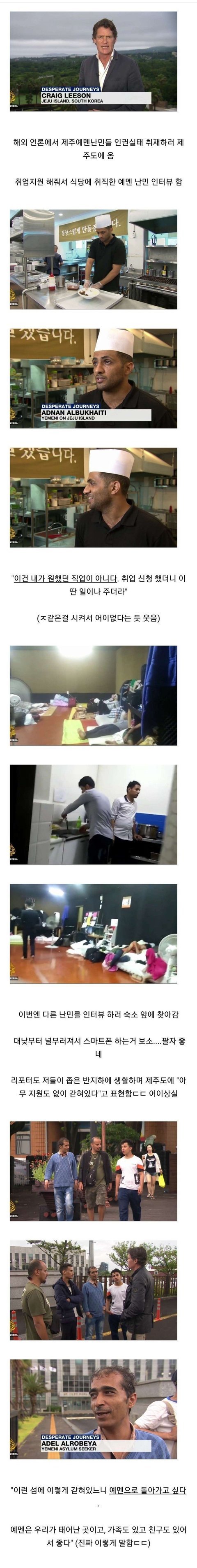 공문 요약한거야. 내가직접한건 아니지만 공문읽어보니 맞는 요약이라 퍼왔어. 정부도 열심히 노력중이니까 조금만 믿어주자. 그리고 6월1일부로 예멘 무사증 막았어! 1. 제주도 무사증땜에 급증한거 맞다. 2. 6월 1일부터 예멘은 제주도 무사증에서 제외시킴. 3. 제주출입국·외국인청에는 총 4명(통역 2명 포함)이 난민심사를 담당하고 있는데, 다음 주 내에 직원 6명(통역 2명 포함)을 추가로 투입해서 꼼꼼히 처리할 것임. 4. 이 일의 발단인 503시절 만든 난민법 개정할거임. 5. 취업사기목적도 잡을거고 보호가 필요한 난민은 신속하게 보호하고, 남용적 신청자는 단호하게 대처. 6. 지나치게 온정주의적이거나 과도한 혐오감을 보이는 것 모두 바람직하지 않으니 자제하길 바람. 7. 인터넷 등에서 일부 사실이 아니거나 과장된 내용이 유포되는 사례가 발견되고있으니 현혹되지 않도록 협조 부탁드립니다.
