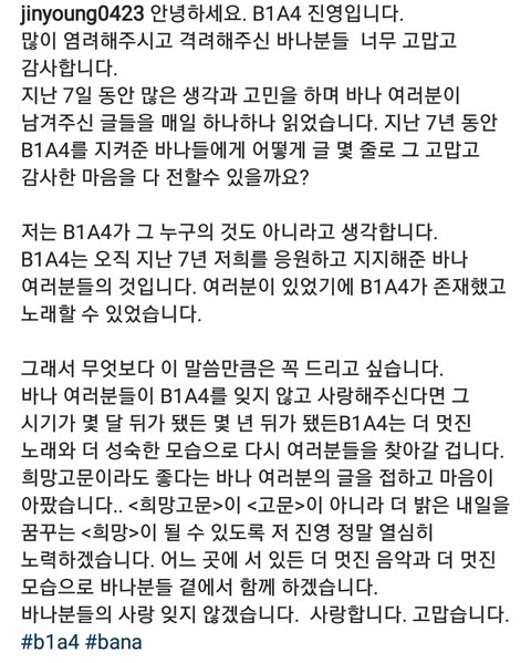무심코 인스타글보다가 진영이가 올린글보고진짜 눈물나온다ㅠㅡㅠ