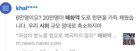 혜화역 시위 6만명이라더니 이제는 20만명!?