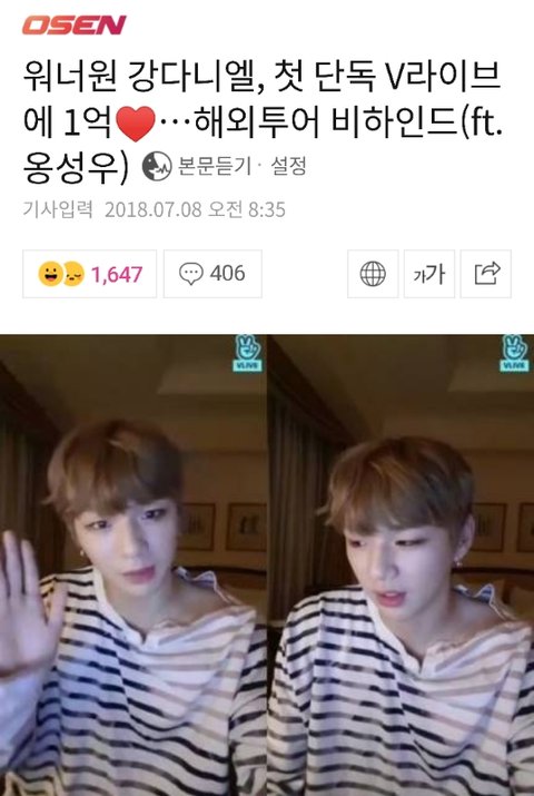 워너원 강다니엘, 첫 단독 V라이브에 1억♥…해외투어 비하인드