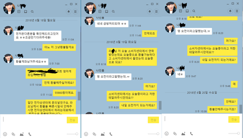 그래서 라오님이 저한테 6/18일에 카톡이왔죠 환불해주신다고 저는 계좌를 남겨드렸는데 이또한 거짓말이였습니다 .
