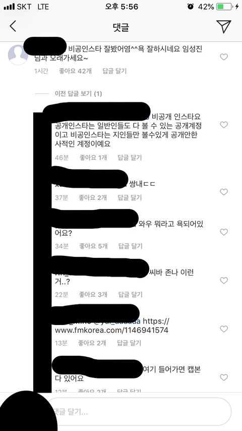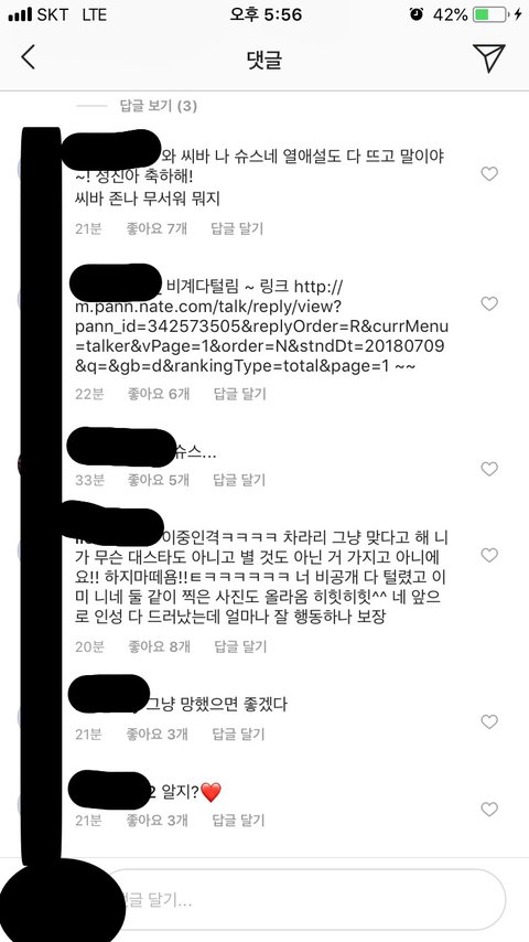 이 사진들은 현재 이수민 공개계정 댓글 일부분이야ㅠㅠ