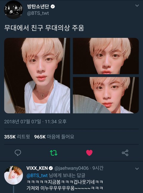 석진이 부채 친구분 짹 답멘 봄 ? ㅋㅋㅋㅋ
