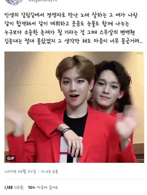 ㄹㅇ 신기하긴 하다 같은 오디션 보고 서로 너가 될거야 했는데 둘다 합격하고 같은 그룹으로 데뷔