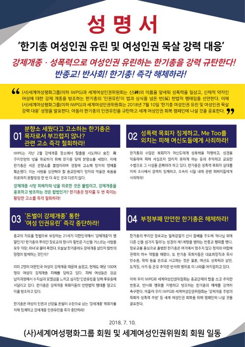 ‘한기총 여성인권 유린 및 묵살 만행 강력 대응’ 이라는