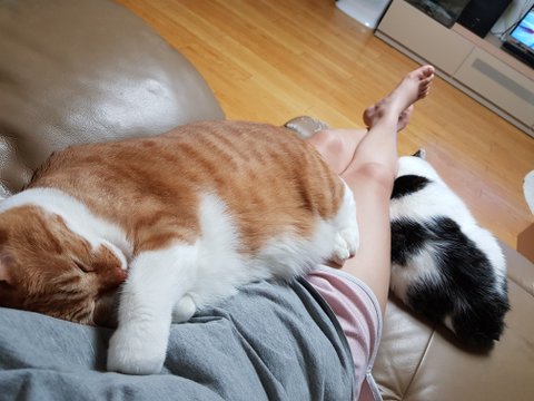 집사랑 돼지들이랑 리클라이너에 누워서 자는 시간