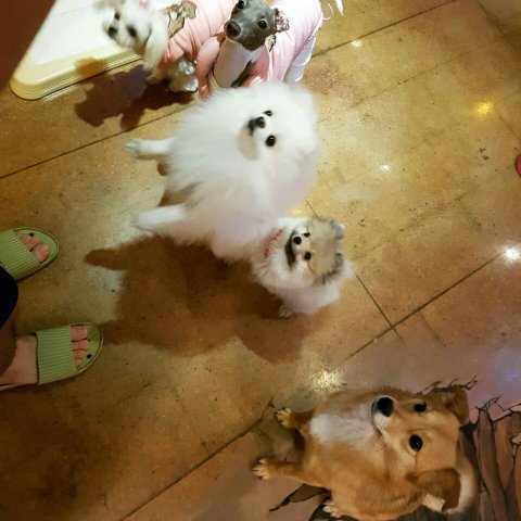 집 근처에 애견동반 술집이 있어서 네마리 데리고 땀흘리며 가봤네요.