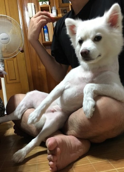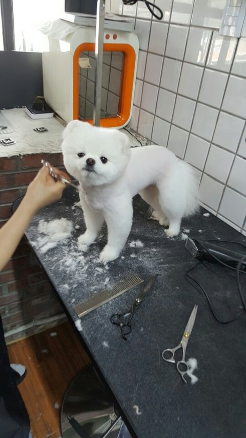 친구가 애견샵을 해서 맡겼는데, 미용하는 내내 고개를 숙이지 않았다며