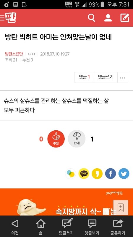 방탄 빅히트 아미는 안쳐맞는날이 없네