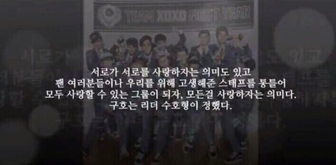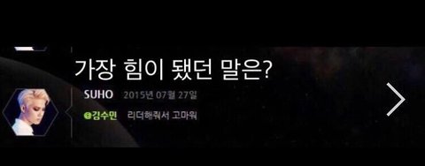 다른 그룹들도 그렇지만 리더라는 자리는 회사와 멤버들 그 중간에서 조절도 해야 하고 이것저것 힘들 수도 있는 자리잖아 그런데도 불구하고 중심 잡아주고 항상 열심히 해줘서 내가 엑소 팬을 하면서 고맙다고 생각하는 멤버야!