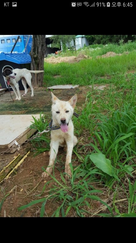 뜬장대신 목줄에 매여 시한부삶을 살아가야하는 아이들이지만 마냥 좋답니다.