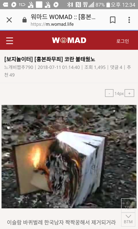 성체 훼손 논란 페미니스트사이트인 워마드 ..