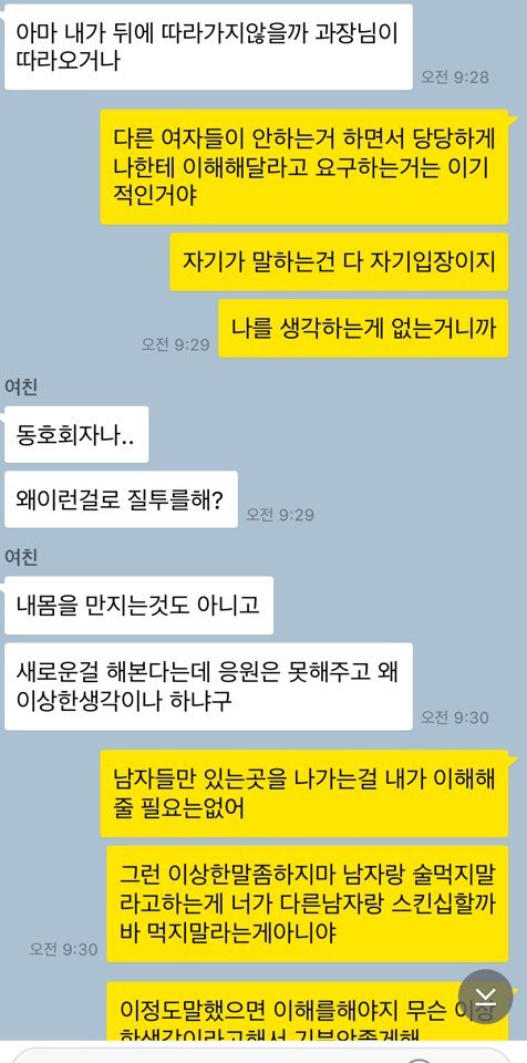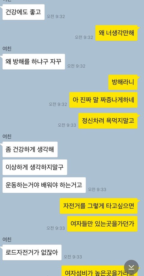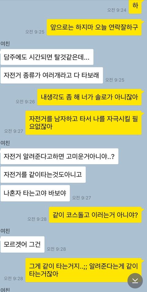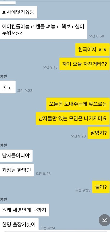 남자 사원들이랑 자전거 동호회를 한다고 하는거에요 그거때문에도 많이 싸웠는데