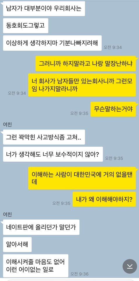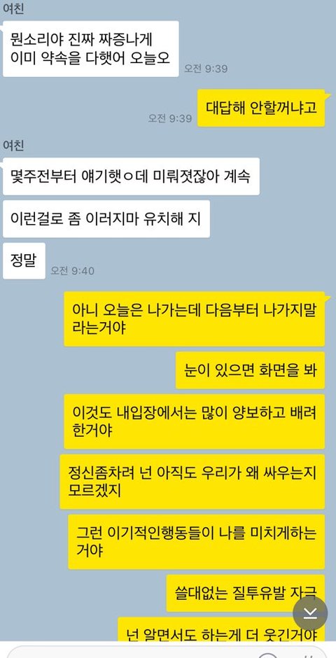 무슨 말만하면 너가 보수적이다 이상하다 내가 죽을죄를 지었냐 내가 그 남자하고 잠을잤냐 스킨십을했냐