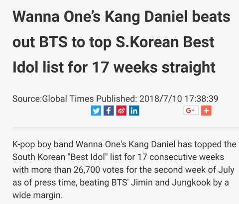 글로벌타임즈 베스트아이돌 1위 기사❗