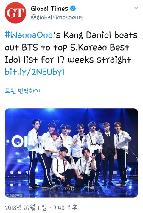 환구시보에 뜬 베스트아이돌 1위 기사!