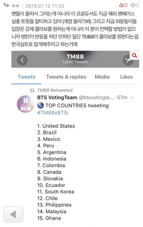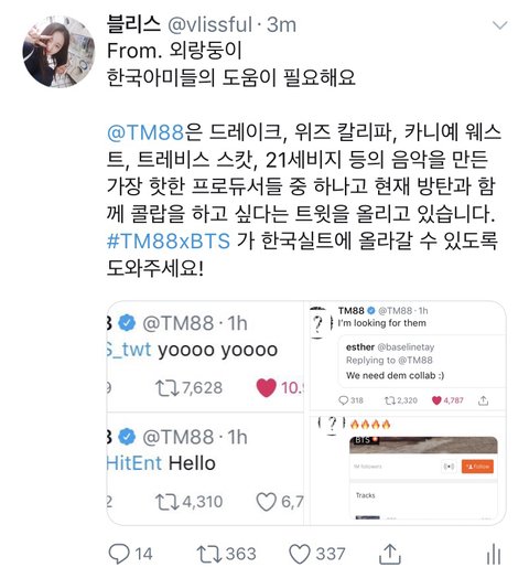 외랑둥이들만 트윗하면 전세계실트에만 올라갈 확률이 높아서 한국실트에도 올라갈 수 있게 한국아미들도 같이 직접 트윗해달라고 부탁 중이야