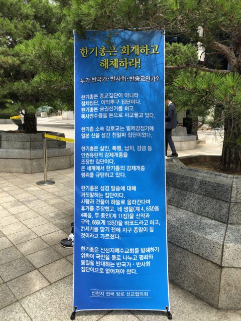 그런 가운데 오늘은 장로교 출신 장로님들이 신천지의 진리를 인정하며거리에 나섰는데요.이제는 더 이상 한기총의 만행을 가만히 보고 있을수 없기에그동안의 한기총의 부패함을 알리고, 한기총 해체를 촉구하는 기자회견을 가진다고 합니다.