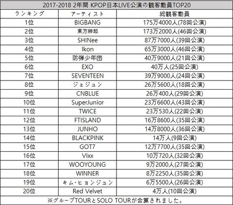 1위 빅뱅 175만 4000명(78회공연)