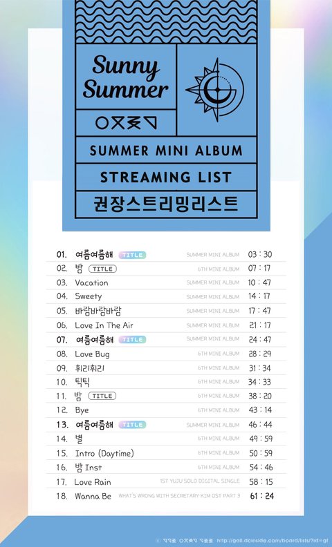 7월 19일 열스하자 ! 밤은 연간차트 확정이고 여름여름해도 같이 들었으면 좋겠다 ㅜㅜㅜ 버디들 화이팅 !