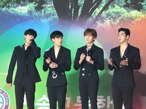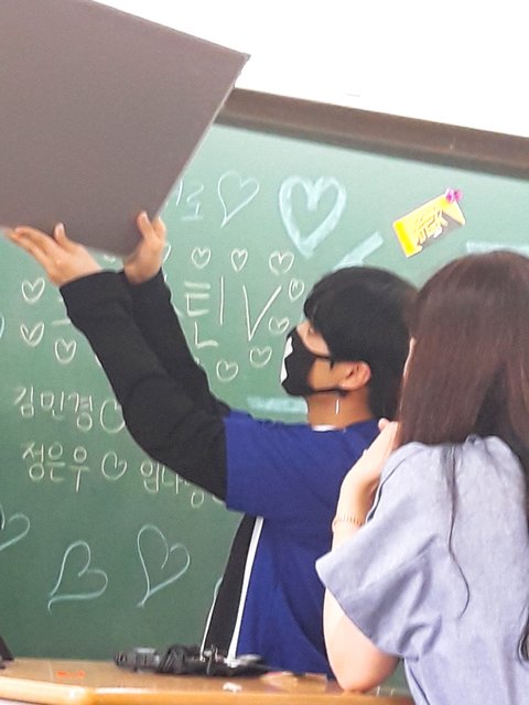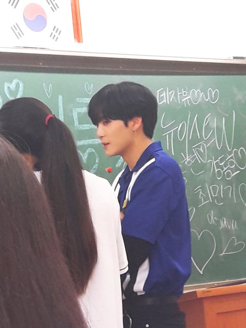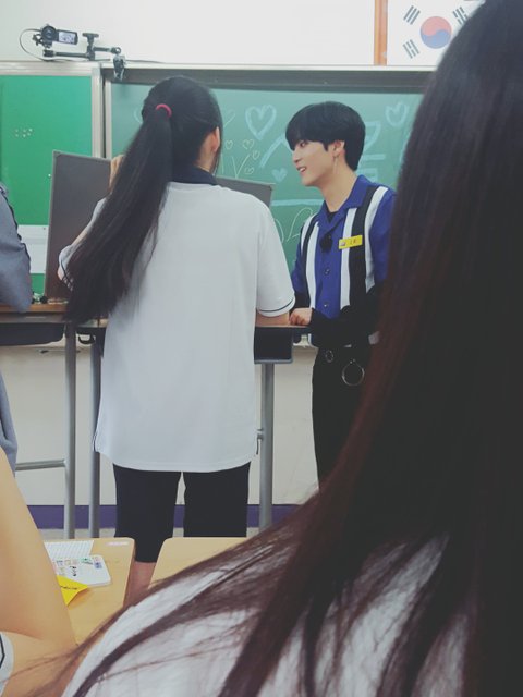 무대하시고 나서는 1학년 반에 랜덤으로 각 한멤버당 한반씩 들어가서 반학생들이랑 같이 퀴즈? 같은거 풀었는데, 렌님은 일단 남자반 들어가신거 맞고요ㅠ.. 나머지 분들은 다들 여자반..! 그중에서 종현님이 저희반 들어오셨는데 가까이서 보니까 안그래도 작아보이던 얼굴이 더 작으시더라고요 마스크 쓰시니까ㄴ 소멸직전.. 잘생기기도 엄청 잘생기시고..특히 눈이 정말 아름다움 그자체...으흑으흑 ...