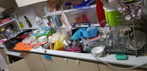 일주일 쌓인 식기들 씻을 생각이 없습니다