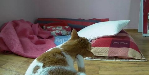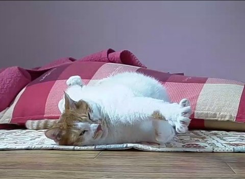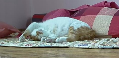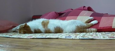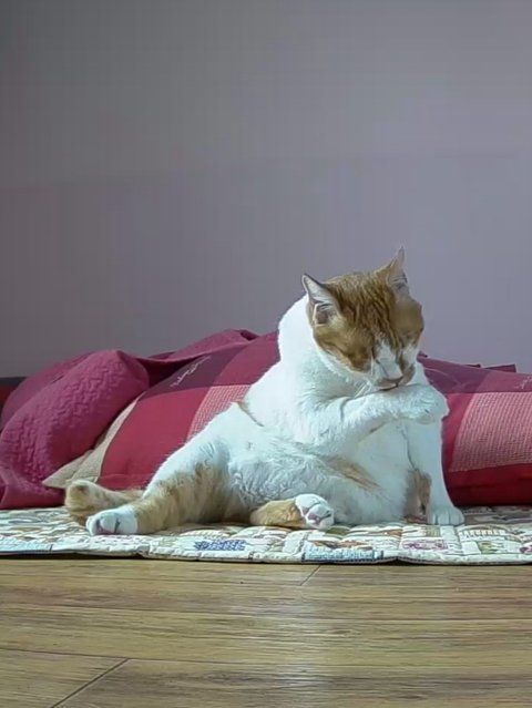 카메라 감시하는 집사가 미워서 앞모습은 보여주기 싫나봄.