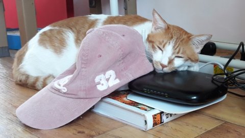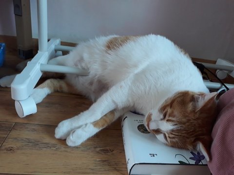 카메라 밀치고 받쳐놓은 책을 본인이 베고 있음.