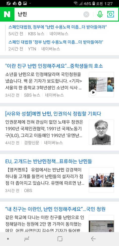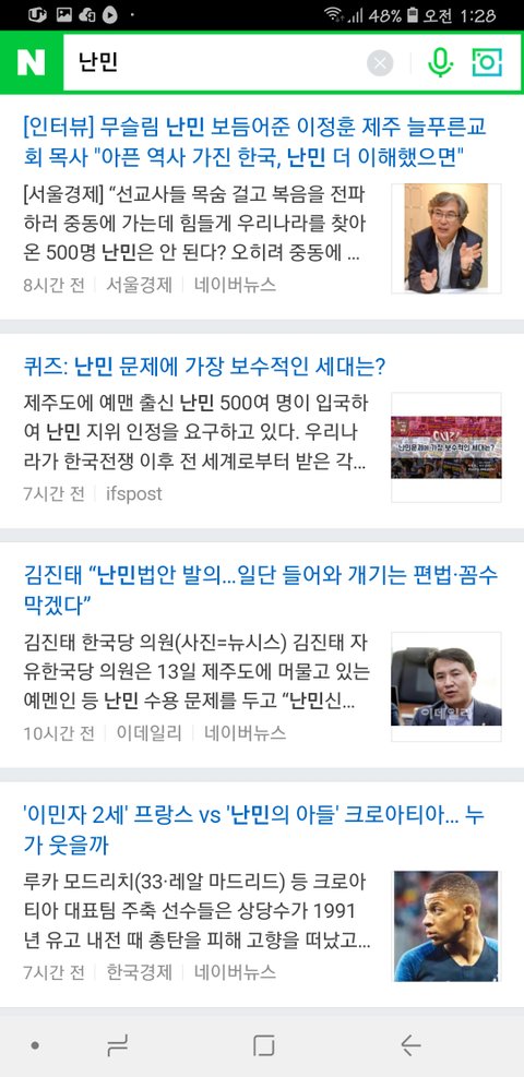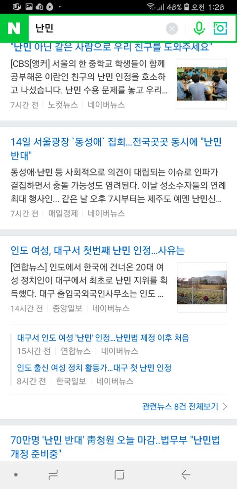 그리고 네이버에 난민이라고 치잖아? 그럼 진짜 소름돋게 긍정적인 기사밖에 없어
