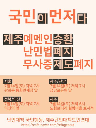 혹시 난민법 무비자제도 폐지법안 청원 안 한 사람 있으면 하고 오자ㅠㅠhttps://www1.president.go.kr/petitions/303910