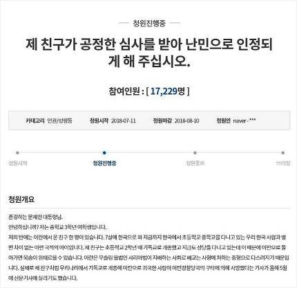 ◇ 정관용> 지난 수요일 청와대 국민청원 게시판에 제 친구가 공정한 심사를 받아 난민으로 인정되게 해 주십시오, 이런 청원글이 올라왔어요. 서울의 한 중학교 3학년 학생들이 이란에서 온 같은 반 친구를 위해서 작성한 글이랍니다. 이 학생은 만약 난민 인정이 안 돼서 이란으로 돌아가면 목숨이 위험하다, 이렇게 지금 호소하고 있는데. 그 이란 국적의 학생 목소리를 오늘 직접 좀 들어보겠는데요. 신원보호를 위해서 익명으로 연결하겠습니다. 학생, 안녕하세요.