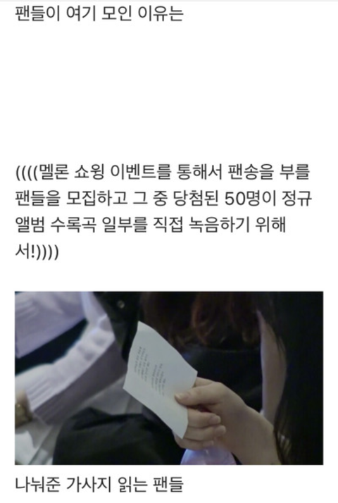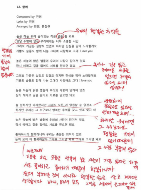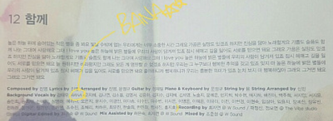 앨범 곡소개에 참여한 팬들 이름도 들어감