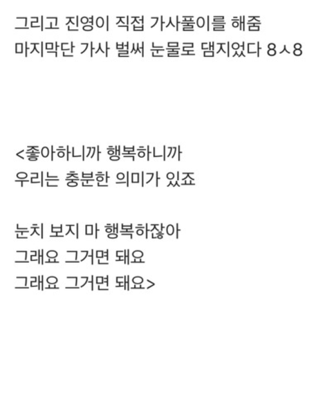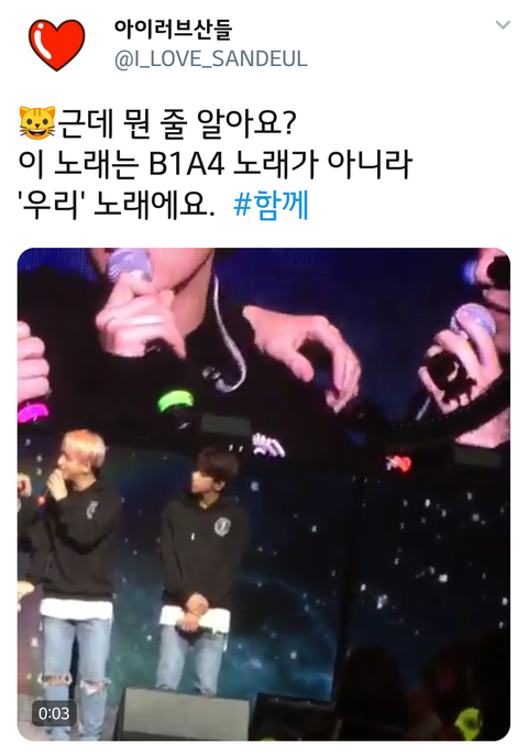 + 헉 톡선인거 지금 봤다ㅠㅠ 이참에 이것도 보고가줘 리더 진영이가 단콘에서 함께 부르기 전에 이 노래는 B1A4만의 노래가 아니라 우리노래라면서 팬들 바라보는장면임ㅠㅠ