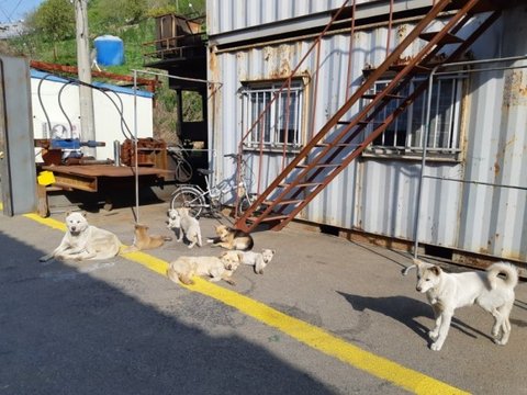 언제부턴가 공장에 주변의 유기견들이 찾아오기 시작했다더라고요.