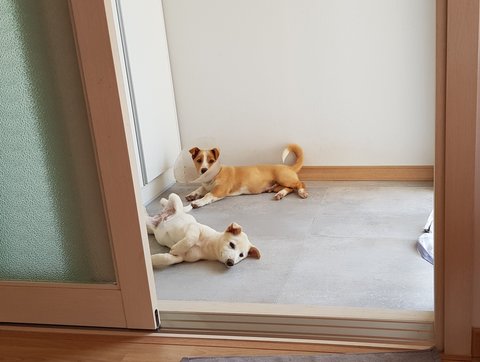 그렇게 집에 도착했습니다!! 꼬질꼬질한 개님들...