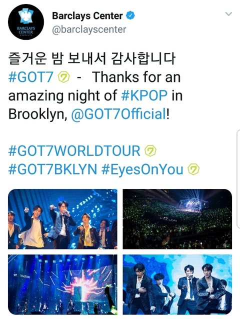 바클레이 센타는 뉴욕에 있는 19000수용의 유명한 공연장및 농구장인데 그곳에서 매진공연을 하는 갓세븐에 큰관심을 가지게된 제작진과 팬들로 인해 이일이 시작된거지요. 거기에다 엠씨분의 혹시 갓세븐팬이 아닐까 싶을정도의 적극적인 구애까지 더해져 sns상에 Bring Got7 on GDNY 가 퍼지기에 이릅니다.