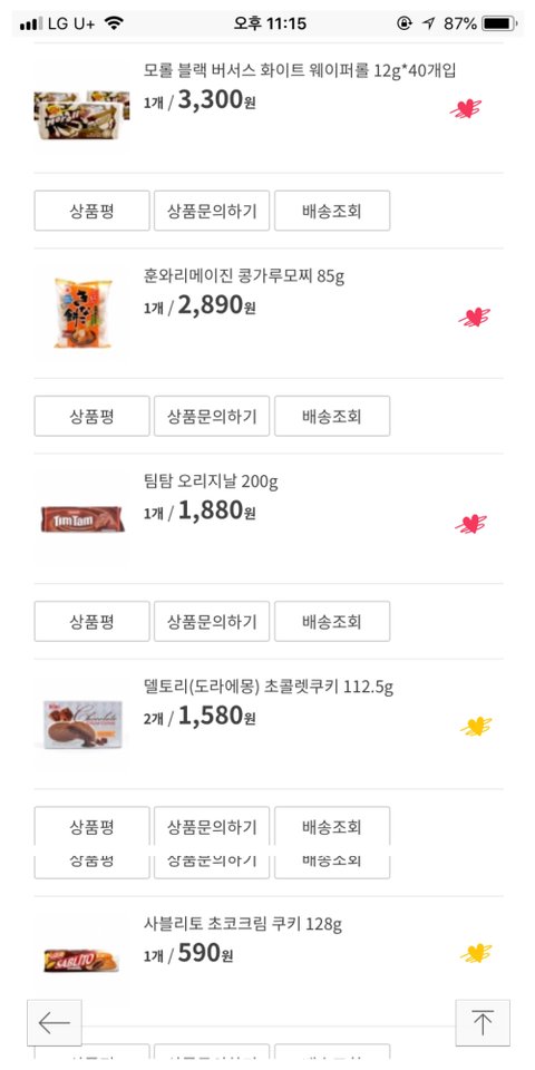소량 과자는 너무 밀내랑 싸구려맛..