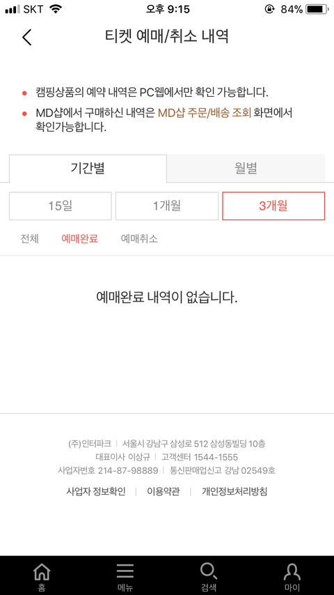 5기 인터파크 예매내역 왜 안뜰까 ?ㅠㅠ