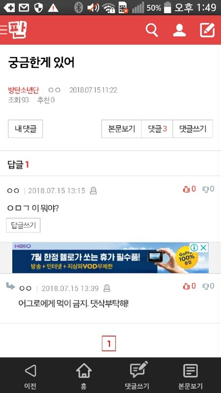 댓글 ㅇㅁㄱ 하나.