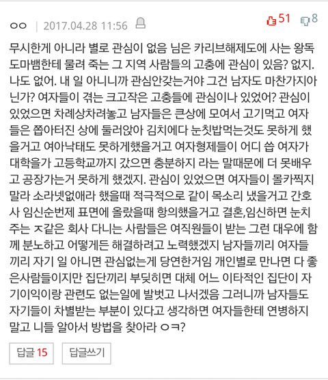 한국페미니즘/feminism/여성주의/안티페미니즘/여성혐오/안티페미/꼴페미/여성비하/한남/웜/흉내/20대/루저남/거지남.루저페이/돈이없으면여자만날생각마라/워마/혜화/이대/한국남자/외국남자/모쏠남/모쏠녀/독신/비혼/이혼/사이다/김치녀/김치남/여자패션/새내기여신/새내기남신/혈액혈별남자/스시남/스시녀/삼초한/페미