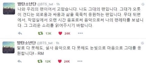 평소같았으면 덕후의 콩깍지로 치부했을텐데 이번엔 내 말을 잘들어주더니 얘네는 아미들을 보람있게 만들것같다는거야ㅠㅠㅠㅠㅠㅠㅠㅠ 이렇게 재능있고 주체적인 아이돌인지 몰랐다며 멋있다고 알엠이 말한 그 응원 나도 받고 싶다고 영업해줘서 고맙다는 말까지 들었어ㅠㅠㅠㅠㅠㅠ 내일부터 출근길에 방탄노래를 듣겠다고하는데 눈물날뻔ㅠㅠ
