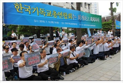 성도님 ~ 안녕하세요 ~~지난 7월 12일, 한국기독교총연합회 건물 앞에선 신천지 교회 장로선교협의회 주최로 한기총 해체 촉구 규탄대회가 열렸답니다.