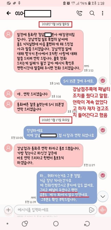 저렇게 통보를 받고 본사 측 담당자와 통화를 했습니다.