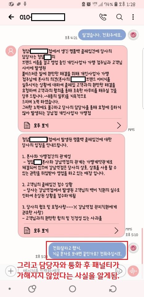 결론은 청담** 담당자는 피해자인 저에게 패널티에 대한 내용을