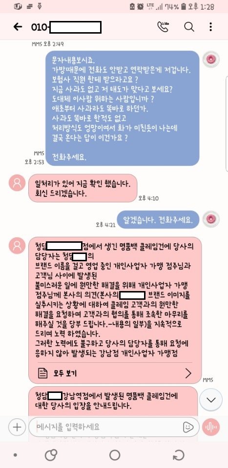 청담** 본사 및 담당자에게 연락왔습니다. 저에게 전달한 내용 입니다.