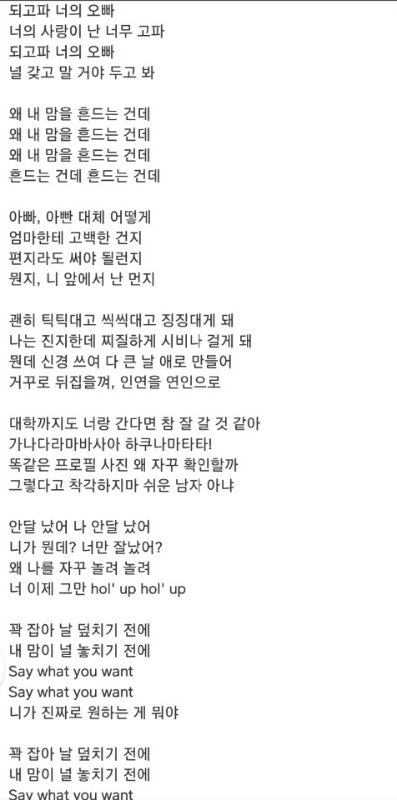 개인적으로 가사 오글거리는 노래 있냐