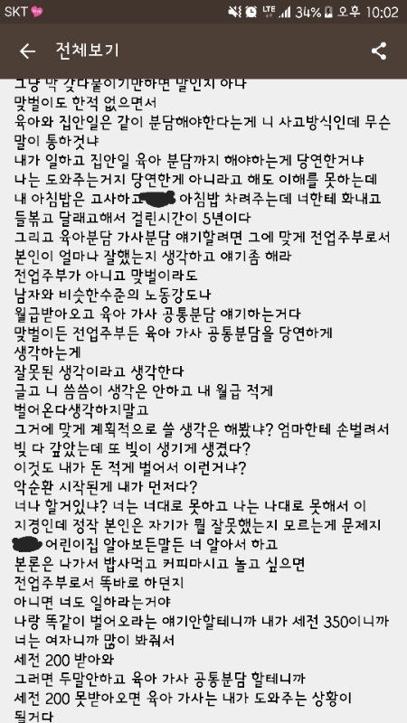 경력단절 된 저보고 이백을 벌어오ㅏ야 분담이라고 해준다고 얘기를 하니까 여줘보는겁니다
