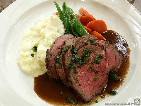 하지만 그보다도 더 감동인 건 곁들이 음식으로 나온 매쉬드 포테이토와 깍지콩, 당근.